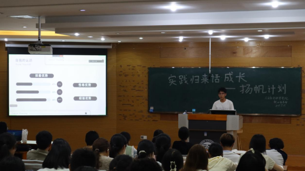 本次实践归来话成长——“扬帆计划”分享会是学院重视学子发展、拓宽学生就业视野与提高学生就业能力的重要举措之一,较好地宣传了大学生实习“扬帆计划”,提高了学院同学对“扬帆计划”的认识与了解,对人文学子就业规划起到了引导作用。