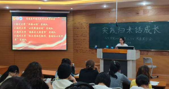 福州大学“丝路心侨”实践队成员陈馨莹同学以“出征背景与团队组成”为切入点,从实践背景、前期筹备、实践成果及实践感悟等维度展开汇报。展示内容充分体现了福大学子积极响应国家号召,在探寻侨乡文化根脉、关爱留守群体、推广“一带一路”文化等方面的深刻思考与务实行动,彰显了新时代青年的家国情怀与实干精神。