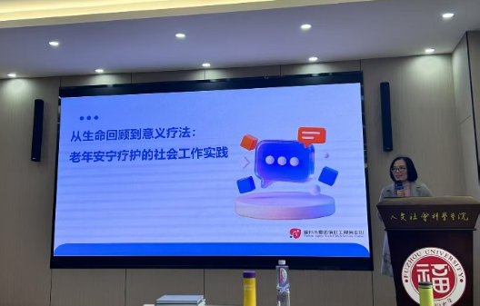 为深化我院社会工作专业学子对老年安宁疗护的理解,人文学院特邀福州市爱加倍社工服务中心王素梅主任,于2025年12月30日开展主题为“从生命回顾到意义疗法:老年安宁疗护的社会工作实践”工作坊。