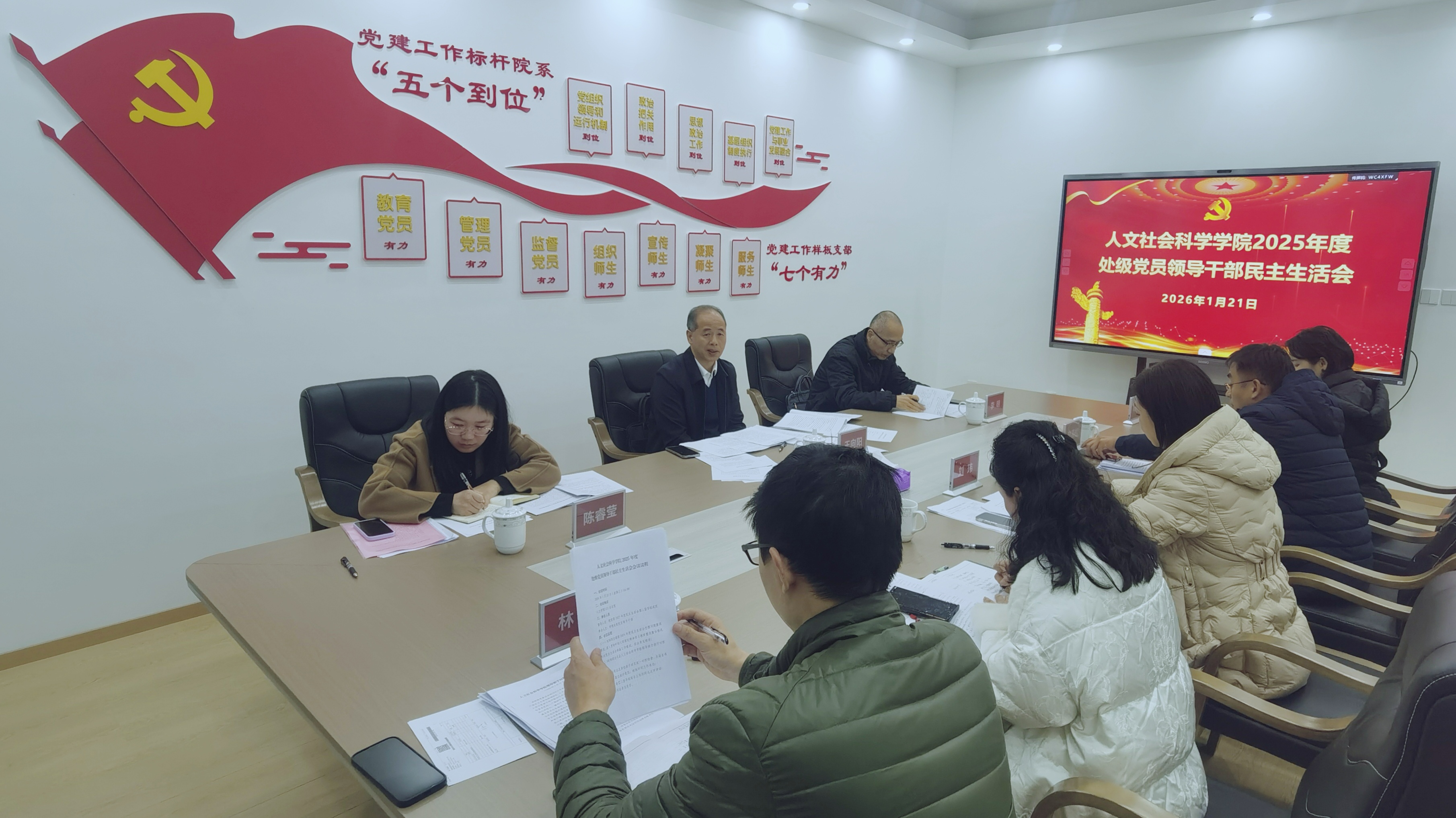 1月21日下午,人文学院在学院211会议室召开2025年度党员领导干部民主生活会。福州大学党委常委、副书记王向阳及校民主生活会第二督导组全体成员到会指导,学院全体党委领导班子成员参加会议。会议由院党委书记刘玮主持。