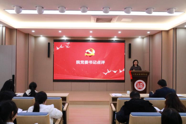 学院党委书记刘玮对各党支部工作进行点评总结,她肯定了各党支部在规范基础党务、凸显专业特色、服务育人大局上的成效,同时指出党建与业务融合不够、品牌影响力不足等共性问题。刘玮书记强调,2026年是福州大学争创全国党建示范高校的关键之年,各党支部要抓实“规定动作”、做优“自选动作”,以高质量党建推动学校学院事业高质量发展。