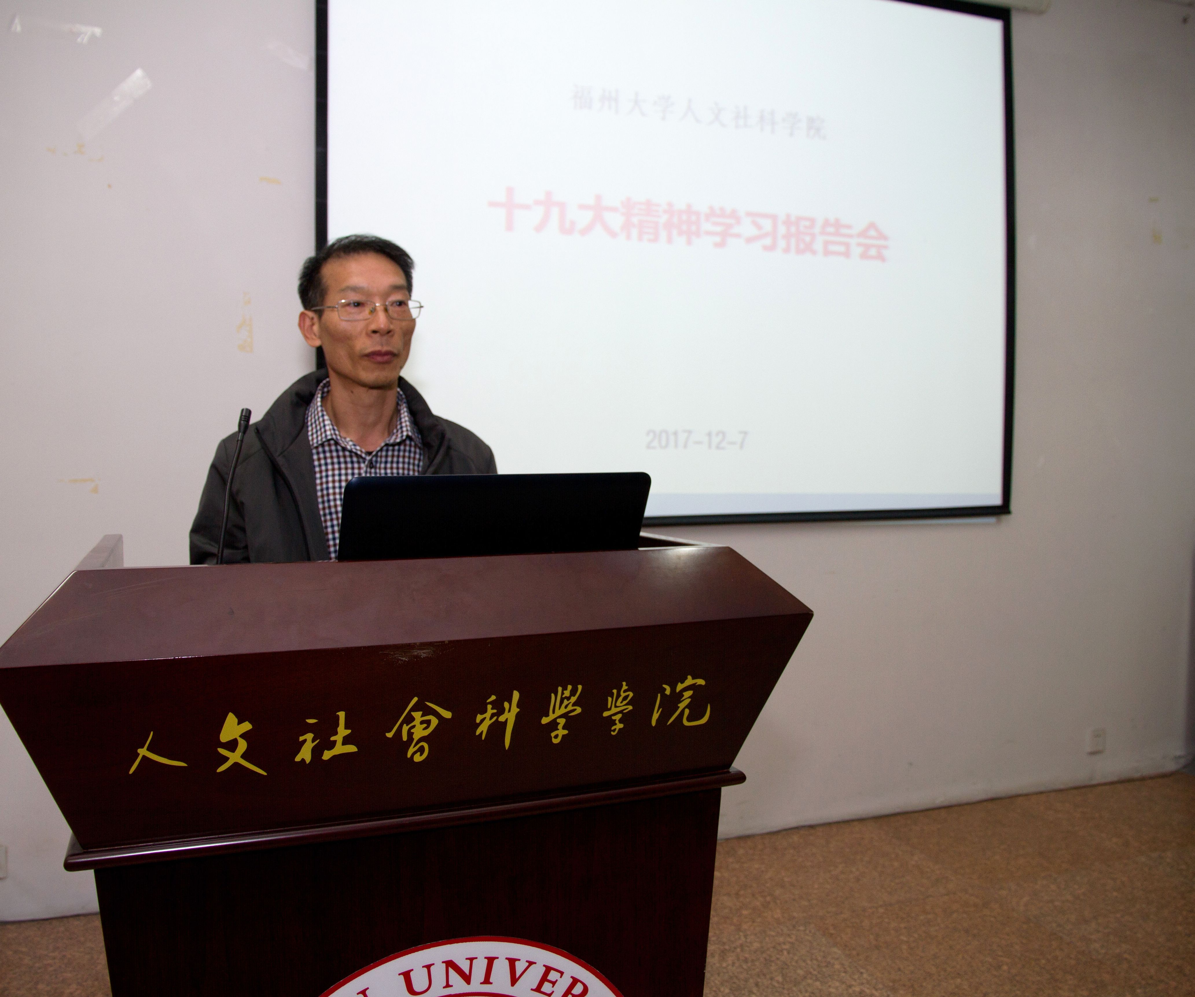 12月7日下午,我院在院202报告厅举行第二次党的十九大精神学习辅导报告会,由校十九大精神宣讲团成员,我院党委委员、院长吴兴南教授作“习近平社会治理创新理论的科学内涵及精神实质”辅导报告。全院教职工和部分学生党员、入党积极分子约120人参加了报告会。报告会由院党委林秋生书记主持。