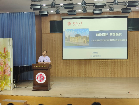 会上,齐朝阳老师首先从人文学院概况切入,介绍了学院的基本情况,并告知本级研究生的总人数及各专业分布情况,让新生对所在集体有了全面且直观的认识,快速建立归属感。在新生最为关注的发展规划方面,齐朝阳老师结合学院过往毕业生案例,为新生梳理了“继续深造”与“就业发展”两条核心路径。随后,齐朝阳老师围绕学院规章制度展开重点讲解。他不仅详细说明日常管理要求,如请假流程的申请步骤、审批节点,以及晚点名、熄灯作息等生活规范,更针对研究生阶段的核心任务,解读了论文送审的标准、流程与时间节点,以及海外留学申请的条件、所需材料与学院支持政策,确保新生清晰知晓各项管理细则,做到依规行事。