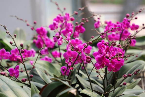 实践队队员与指导老师齐朝阳在蝴蝶兰基地负责人的引导下,走进蝴蝶兰培育大棚。棚内温度调控适宜,17个品种的蝴蝶兰幼苗整齐排列,长势良好。据负责人介绍,基地内每株蝴蝶兰均采用水草培育,催花期需将室内温度严格控制在18-25℃,精细化的培育要求使得生产及养护成本较高,进而导致产品售价相对偏高。据悉,该基地依托抚市镇党委牵头的村企共建模式,目前已有6个村通过投资入股参与其中,为当地花农带来了可观的经济收入。不过,基地当前仍面临销售渠道较窄、运输难度大等现实问题,亟需通过优化销售策略、精准对接市场需求,进一步实现增收减损。