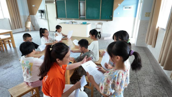 朗诵课堂上,彭雯琪以生动示范和细致指导,引领孩子们感受文字韵律之美。她耐心纠正发音、体态,鼓励孩子们用声音传递情感,稚嫩的童声在抑扬顿挫间逐渐展露自信光芒。
