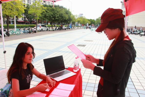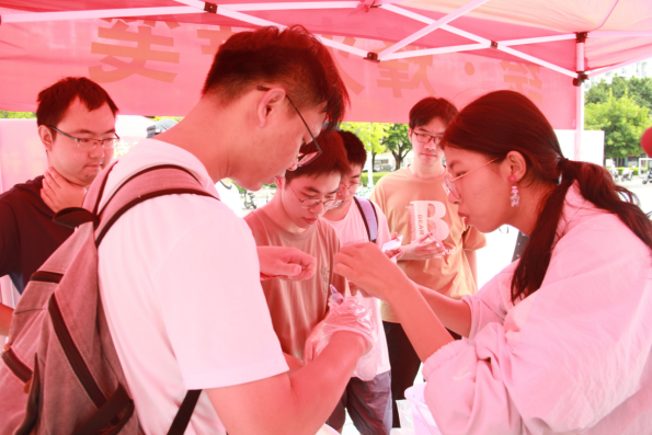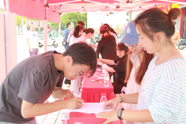中文系老师们亲临现场,视察活动开展情况,并与同学们互动交流。老师们体验各活动,并围绕普通话发音、诗词鉴赏及语言规范等方面进行指导,加深了同学们对国家通用语言文字的理解与认同。师生还共同在签名墙上留下自己的名字,为本次活动写下珍贵见证。