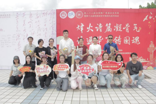今年是中国人民抗日战争暨世界反法西斯战争胜利80周年,为引导广大师生增强语言文字规范意识,弘扬爱国主义精神,传承中华优秀传统文化,营造“说普通话、用规范字”的浓厚校园氛围,9月20日,第二十八届全国推广普通话宣传周暨第十五届福州大学校园语言文字规范化系列活动在青春广场举办。本次活动由福州大学党委宣传部、福州大学语委办主办,福州大学人文社会科学学院、福州大学中华诗词文化研究中心协办,福州大学中文系2023级承办。