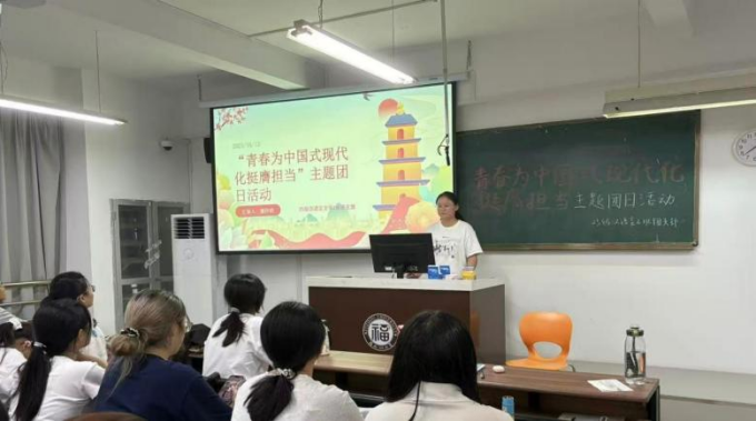 本次主题团日通过“宣讲-观影-研讨”三步展开:团支书阐释福大青年的时代担当;集体学习辅导员主题视频,凝聚思想共识;聚焦“汉语言文学专业如何贡献中国式现代化”展开问答,欧梓锐等同学结合专业畅谈见解。系列活动层层深入,有效引导团员们将个人成长与国家进程紧密相连。