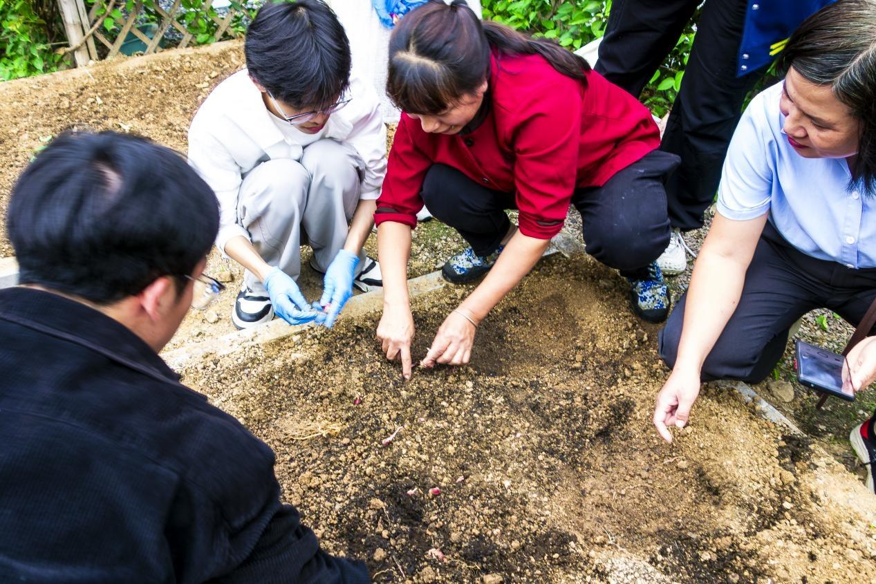 启动仪式后,种植实践环节正式拉开帷幕。同学们在工作人员的专业指导下,有序领取劳作工具,深入田间开展实践:从松土翻地时的力度把控,到播种育苗时的间距考量,再到浇水施肥时的科学配比,工作人员通过“理论讲解+现场示范”的方式,将农耕知识与实践技巧倾囊相授。田垄间,同学们分工明确、配合默契,弯腰播种的身影与泥土的芬芳交织,青春的活力在劳作中尽情释放。每一铲培土,不仅将希望的种子埋入土壤,更将“尊重劳动、热爱劳动”的理念根植于心;每一滴汗水,不仅浸润着土地,更见证着青年学子从“知识学习者”向“实践践行者”的转变。